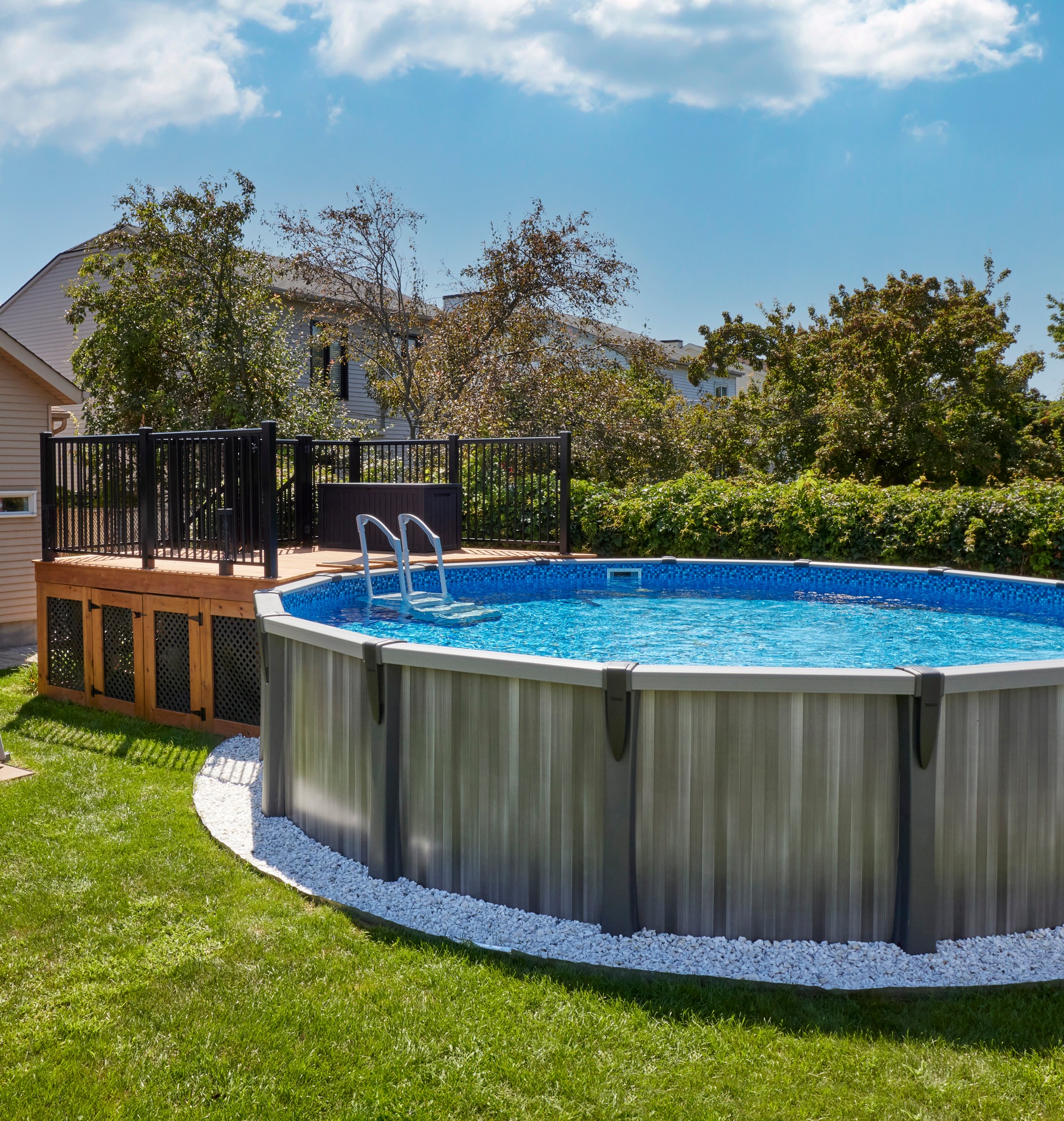 Trevi pools have established themselves in the above-ground pool industry, through functional product conception, stylish designs and innovative materials. Trevi builds high quality pools, meet and exceed manufacturing standards and integrate the latest technologies to create a superior pool.