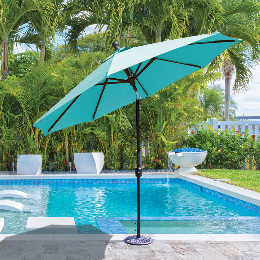 Introducing the Galtech 737 9 ft Deluxe Auto Tilt Market Umbrella, the perfect addition to your outdoor space! Available in 7 different pole finishes and multiple color fabric options, this umbrella will match any decor. The Deluxe Auto Tilt feature allows for infinite tilting with just a turn of the crank, giving you complete control over the shade. Two poles are threaded together for added stability, ensuring that this umbrella will withstand even the windiest of days. Constructed with a powder-coated aluminum frame and a steel cable lift, this umbrella is both durable and reliable. Whether you’re enjoying a sunny day by the pool or hosting a backyard barbecue, the Galtech 737 9 ft Deluxe Auto Tilt Market Umbrella will provide the perfect amount of shade and style to your outdoor oasis.