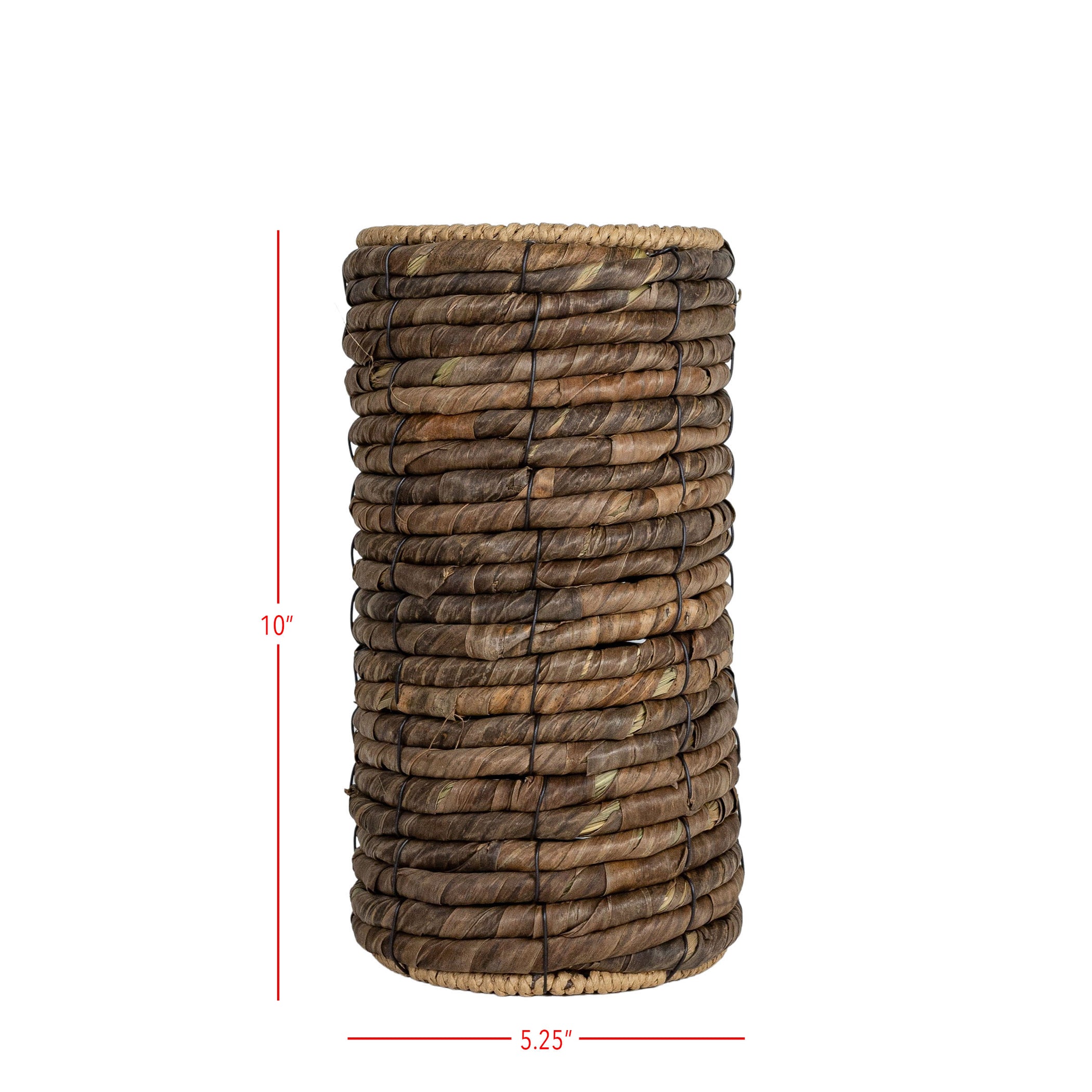 A modern boho bar accessory offering the perfect combination of texture and decorative elements. Add your favorite bottle of wine to gift or display with this woven natural seagrass wine holder. Not only can it be used in your bar, but it is also a great size to use as a dry vase for displaying faux stems and seasonal grasses.