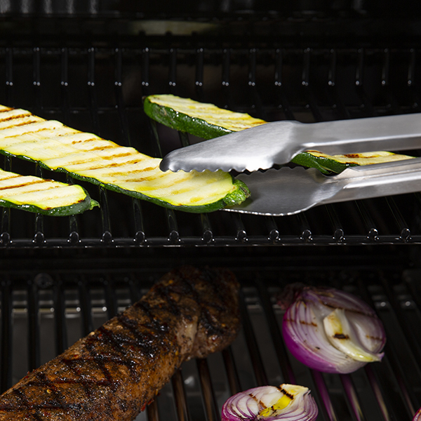 Soft grip locking tongs with double scalloped tips to grip scoop easily. Shorter tongs are ideal for smaller grilled items or where more precision is needed.
