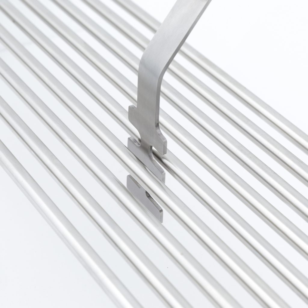 Broil King’s new simplified grid lifter removes both cast and stainless cooking grids in Broil King grills. One set of tines to remove cast and another to remove stainless cooking grids. Stainless with resin handle.