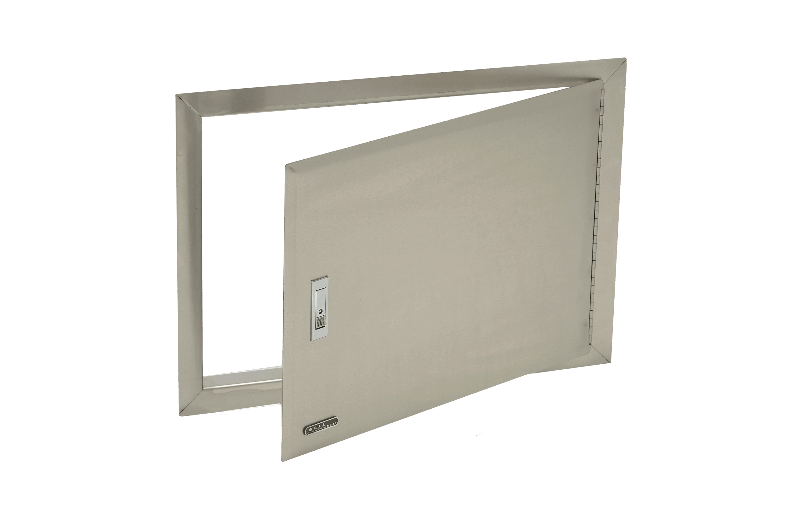 The Horizontal Access Door has a lock and stainless steel frame for propane tanks or gas lines.