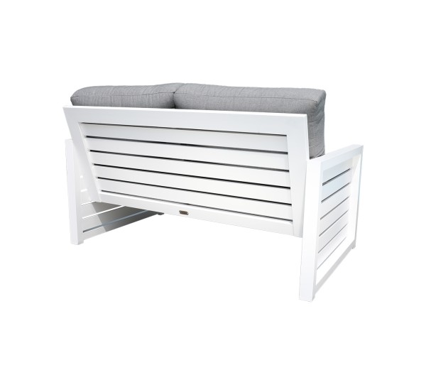 The Gramercy patio furniture collection features TigerDrylac® White cast aluminum. The cast aluminum frames are easy to maintain. The luxurious design is suitable for residential and commercial settings. The Gramercy patio furniture group photo is shown in Sunbrella® 40434 Cast Slate cushions, pillows in 21″*13″ Tempotest® 51353-8 Mason Cherry and 18″ 986-98 Home Cherry.