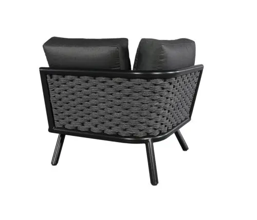 Harlow’s sheltering, rounded chair back, and neo retro angled back legs set the tone for effortless style and serenity. Accented with – NEW for 2023 – Tungsten SOL Rope™ on Akzo Nobel® Black frame, or – NEW for 2023 – Chroma SOL Rope™ with Tiger Drylac® White frame, Harlow is available in dining, deep seating, and sectional options. The Harlow collection delivers the essence of a warm embrace. Find Harlow in deep seating, sectional, and dining options.