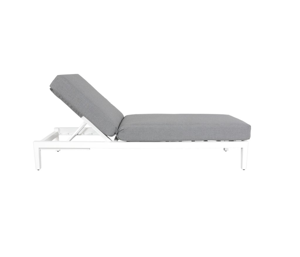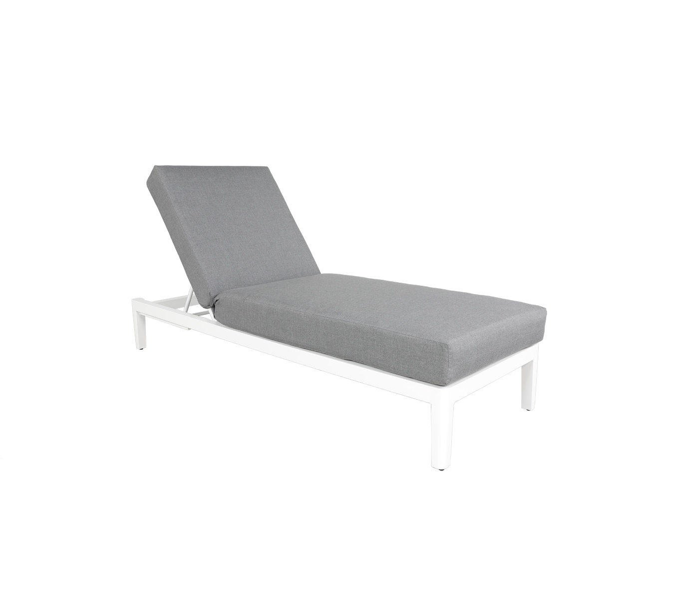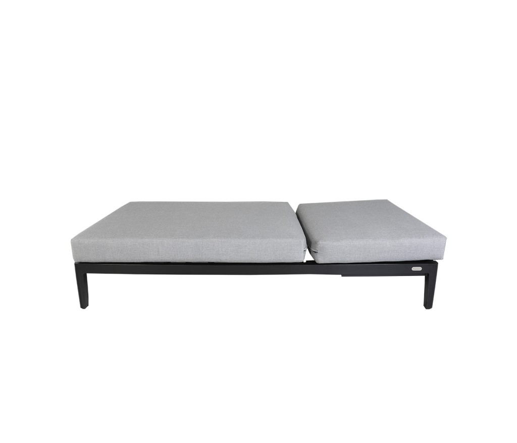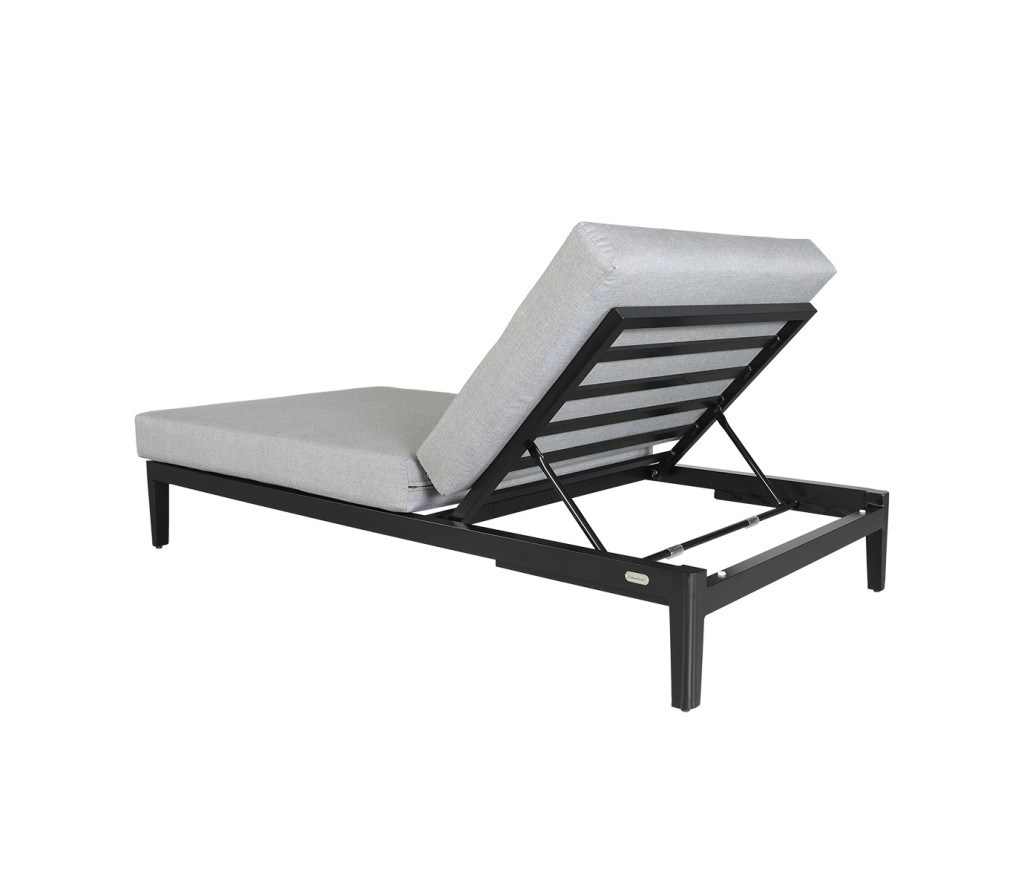 The Ibiza upholstered collection is crafted in the customer’s choice of outdoor performance fabric for a truly custom look, & may also be made with Sunbrella® RAIN Fabric. Boasting wide arms & generous seating room, Ibiza truly brings indoor design outdoors! Cushions & upholstery made to order in Toronto. Fabric shown: 15000-0003-77 Sunbrella® Spotlight Ash RAIN, sectional group shot fabric: 15000-0003-77 Sunbrella® Spotlight Ash RAIN, Pillows in 145501-0001 Mara Classic, deep seating group shot in 40434-77 Sunbrella® Cast Slate RAIN, Pillows in 51684-4 Carrara Maritime. Head rest pillow available at additional cost.