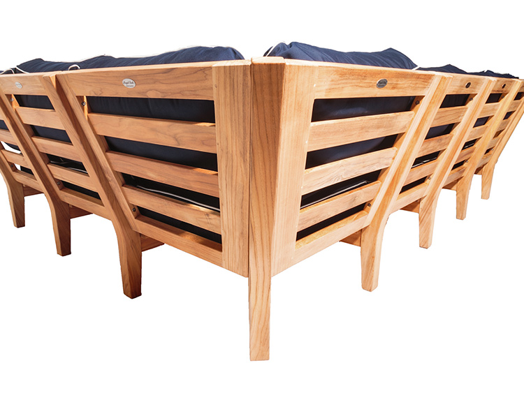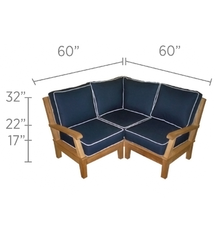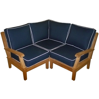Our Miami Sectional base module comes with a corner and two sides. Additional inserts are available for custom layouts. Cushions are available in Natural, Granite, Spa and Navy. All stainless steel hardware.