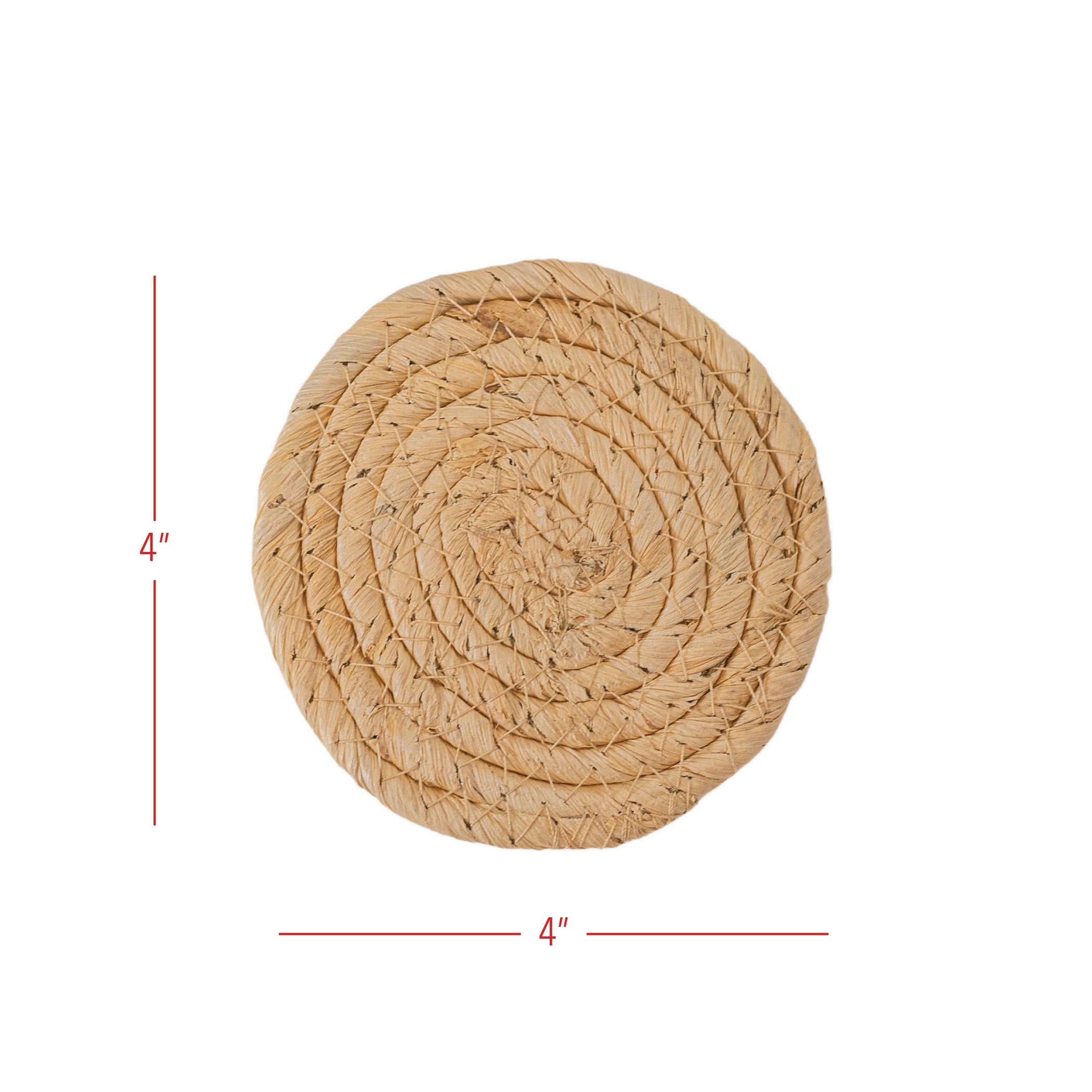 A beautiful set of four coasters crafted from natural corn husk fibers. Charming and functional, the hand-woven structure of the corn husk is an elegant touch to your boho home decor. A timeless design and neutral color palette make these coasters perfect for any living space or tablescape any time of the year.