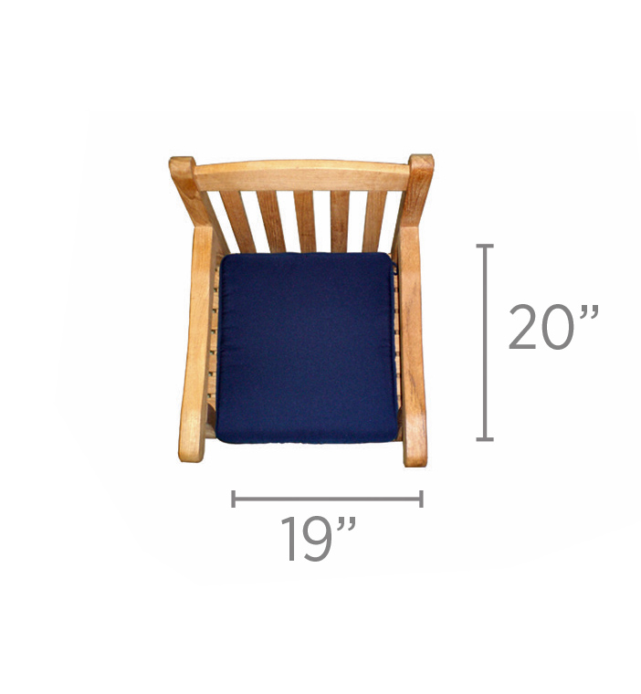 Our cushions are made of high quality Sunbrella Frabic, that is both rain and dirt resistant. Additionally, all our cushions have zippers for easy machine wash. The cushions match our umbrellas for the perfect decor. One Seater Cushion fits the Teak Footrest, Estate, Compass and Comfort Rocker.