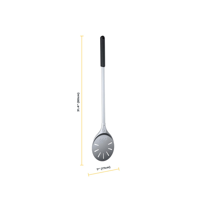 Cook your pizzas faster with the Ooni Pizza Turning Peel, keeping pizzas in contact with the stone baking board as you spin them like a pro in your flaming-hot Ooni pizza oven. The seven-inch, durable anodised aluminium surface has a non-stick effect for sliding right under pizzas, while the perforations let excess flour fall away for a perfectly cooked pizza base.