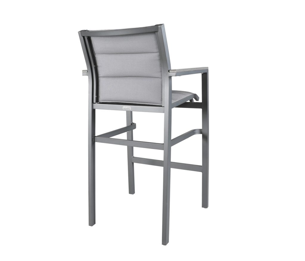 The Origin Padded Resort Bar Stool includes a Mica SOL Teak™ arm accent & is offered in 2 fabric & finish combinations, employing innovative Batyline® Elios™ fabrics, which both have a soft feel & a Wyzenbeek Double Rub count of > 600,000 = Heavy Duty rated. Stackable.