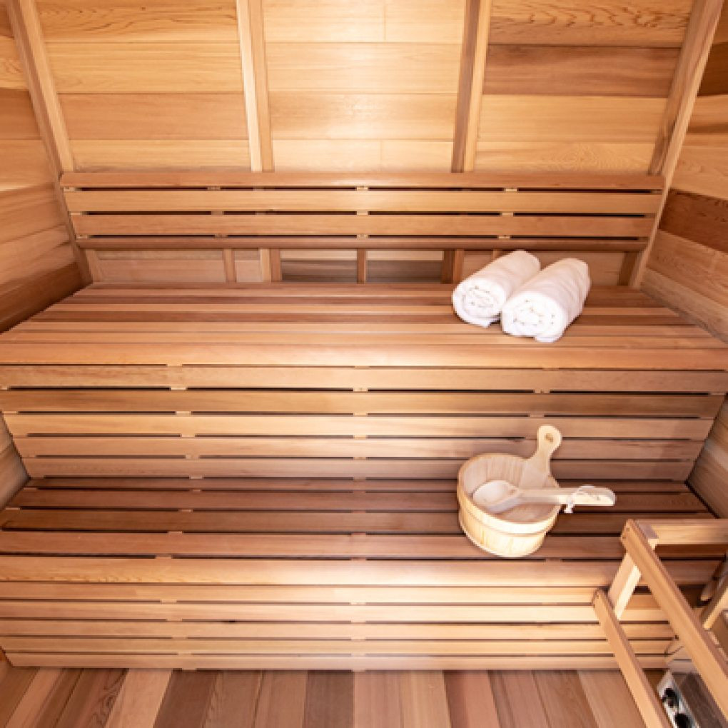 - Glass Sauna Door – 10mm Bronze Tempered Glass Sauna Door with Stainless Steel Hinges.