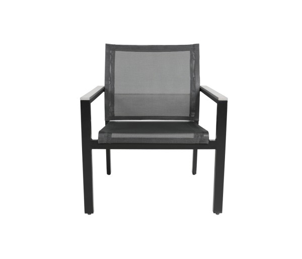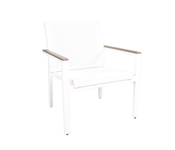 Relaxing in style is effortless with the Skye collection. The timeless, minimalistic profile and arched back add a subtle flair and superb comfort to this collection. Create a chic outdoor setting with two colorways: Black BatylineⓇ sling on a Black aluminum frame with Mica SOL Teak™ accents or White BatylineⓇ sling on a White aluminum frame with Umber SOL Teak™ accents. The Skye collection includes dining, deep seating, and, low-profile Spa and Sand seating options. Stackable.