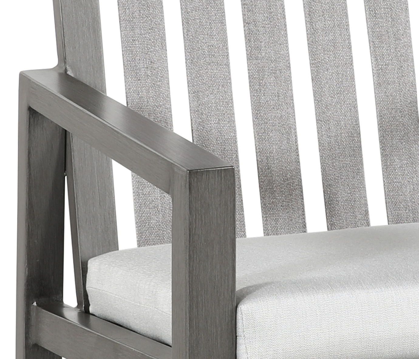 Drawing inspiration from a space where an artisan creates their work, the new CABANACOAST® Studio collection’s bold outline is a stroke of brilliance. Employing a creative blend of hand-brushed aluminum in AkzoNobel® Black finish and new SOL Rope™ Shade, Studio captures the essence of inspired outdoor design. Crafted with distinct, angular back legs and a pitched back for superb comfort, Studio is available in dining, deep seating, and sectional frame options. Group photo shows cushions in 1043-929 Home Sand and 18″ x 18″ and 21″ x 13″ pillows in 1046-93 Charcoal Sand. Shade SOL Rope™ constructed from 32000-0036 Shade fabric.