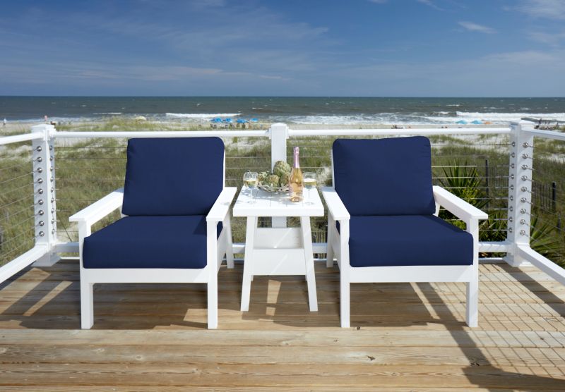 Sleek, modern and clean, this outdoor club chair frame is perfect for any outdoor space! Made of recycled plastics this chair is durable, comfortable and meant to withstand the outdoors.