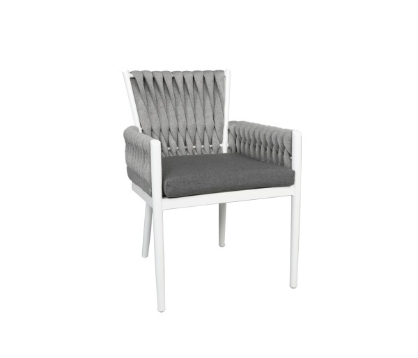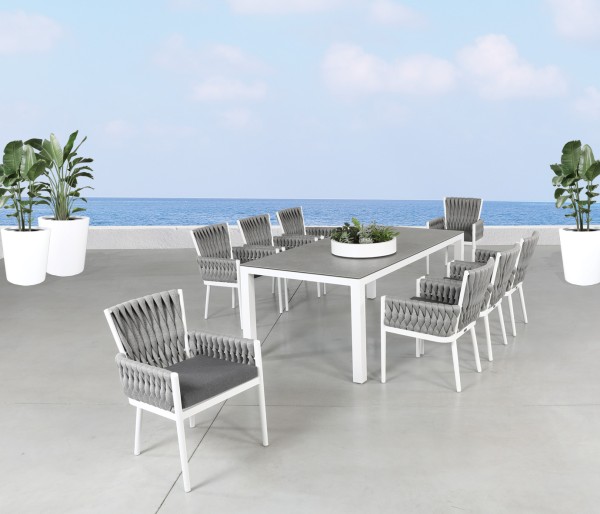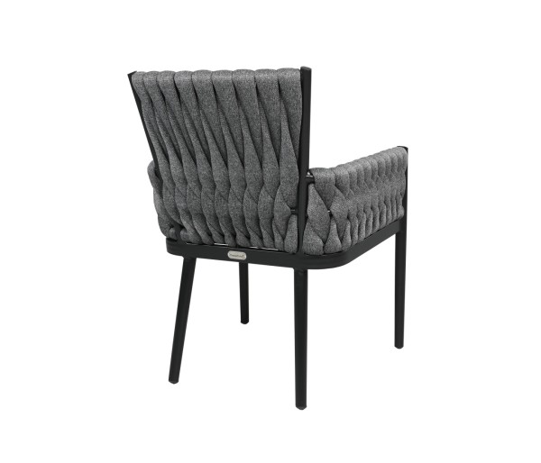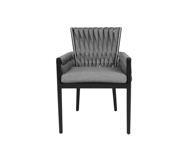 Named after the woven design elements of an outdoor garden trellis and resembling the comfort of your favorite cozy knit blanket, the Trellis collection is not only visually captivating; it is as plush and luxurious as it looks. Trellis is highlighted with Shadow SOL Rope™ woven onto a Akzo Nobel® Black aluminum frame or Zinc SOL Rope™ on a Tiger Drylac® White aluminum frame. Discover this collection in deep seating, sectional, and dining options to suit any outdoor entertainment needs. Group photo shows cushions in 40483-0001 Cast Charcoal, 21″ x 13″ pillows in 145337-0001 Zebra Smoke, and 18″ x 18″ pillows in 5402 Canvas Granite.