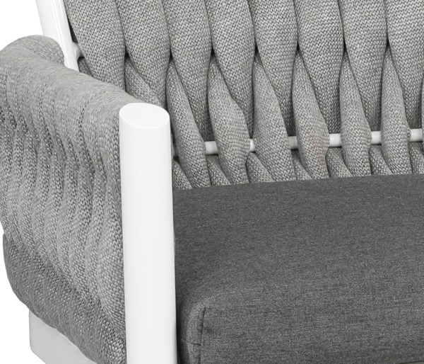 Named after the woven design elements of an outdoor garden trellis and resembling the comfort of your favorite cozy knit blanket, the Trellis collection is not only visually captivating; it is as plush and luxurious as it looks. Trellis is highlighted with Shadow SOL Rope™ woven onto a Akzo Nobel® Black aluminum frame or Zinc SOL Rope™ on a Tiger Drylac® White aluminum frame. Discover this collection in deep seating, sectional, and dining options to suit any outdoor entertainment needs. Group photo shows cushions in 40483-0001 Cast Charcoal, 21″ x 13″ pillows in 145337-0001 Zebra Smoke, and 18″ x 18″ pillows in 5402 Canvas Granite.