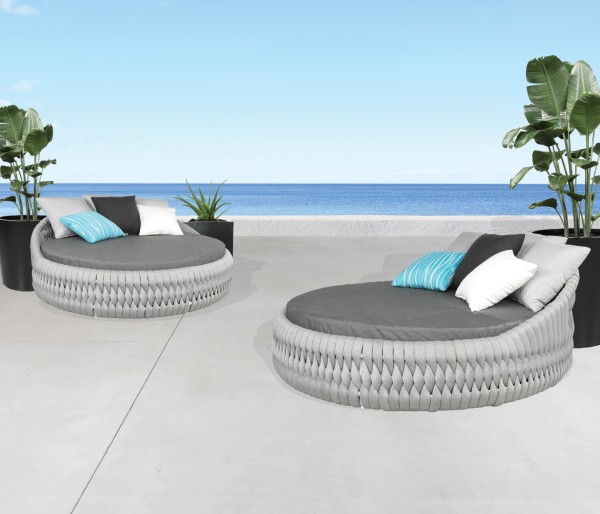 Named after the woven design elements of an outdoor garden trellis and resembling the comfort of your favorite cozy knit blanket, the Trellis collection is not only visually captivating; it is as plush and luxurious as it looks. Trellis is highlighted with Shadow SOL Rope™ woven onto a Akzo Nobel® Black aluminum frame or Zinc SOL Rope™ on a Tiger Drylac® White aluminum frame. Discover this collection in deep seating, sectional, and dining options to suit any outdoor entertainment needs. Group photo shows cushions in 40483-0001 Cast Charcoal, 21″ x 13″ pillows in 145337-0001 Zebra Smoke, and 18″ x 18″ pillows in 5402 Canvas Granite.