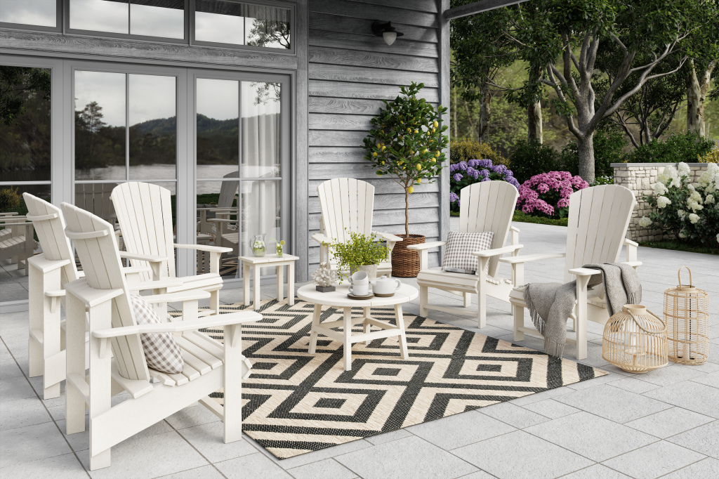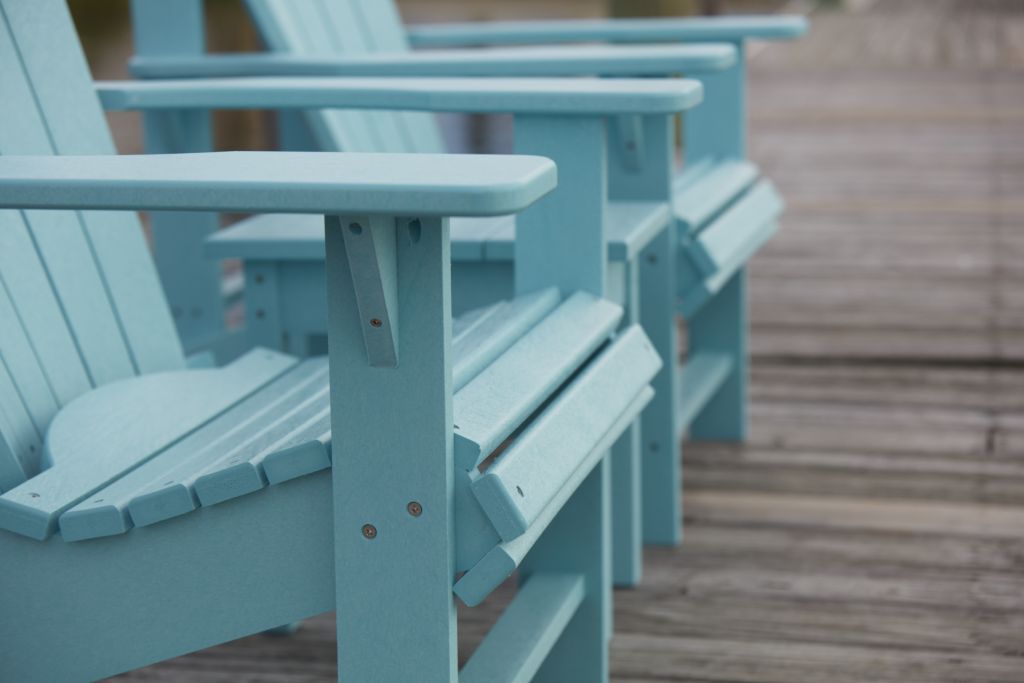 Our Upright Adirondack chair is great for everyday use. With higher arms and seating, this upright chair fits great around a fireplace or any casual space!